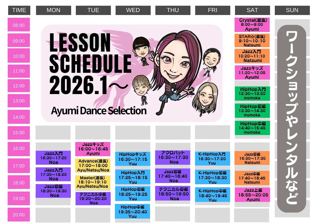 当スタジオで指導する先生方は、経験知識豊富で共に尊敬出来る素晴らしい先生方です。「選ばれた先生方」がスタジオで皆さんを指導します。